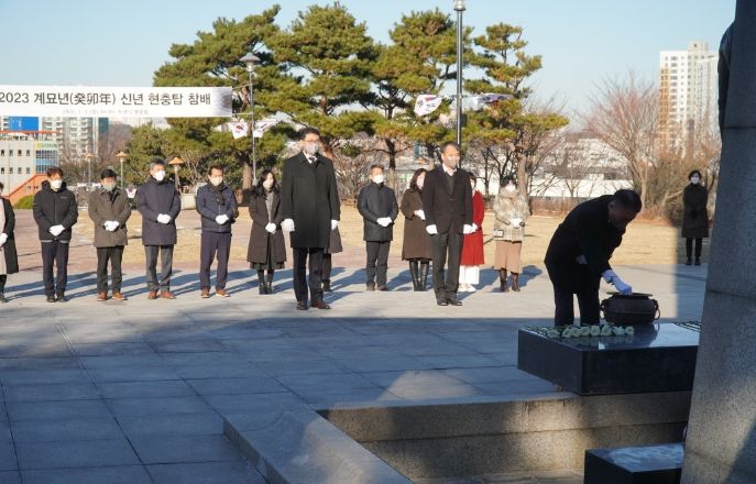 [한국기자연대] 경기도화성오산교육지원청은 1월 2일 아침 2023년 계묘년을 맞아 오산시 현충탑을 찾아 참배하며 2023년 첫 일정을 시작했다.