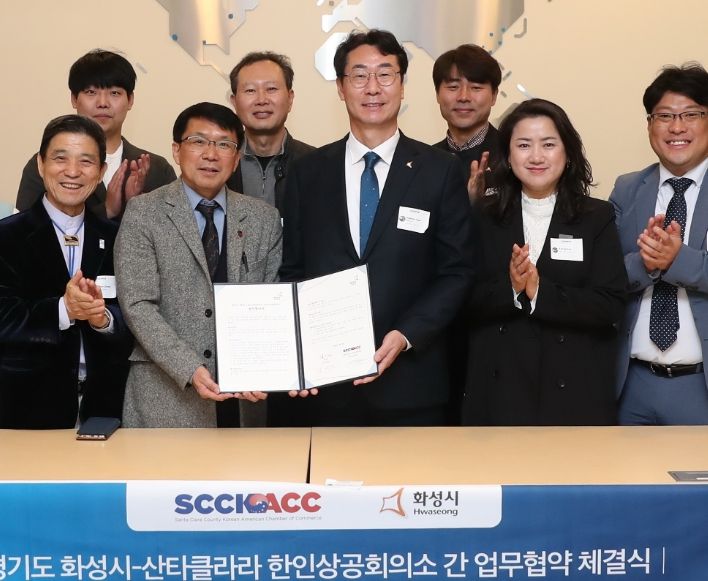 [한국기자연대] 정명근 화성시장이 미국 현지시간으로 9일 실리콘밸리 산타클라라 한인상공회의소와 ‘스타트업 기업의 글로벌 진출 지원 업무협약’을 체결했다.