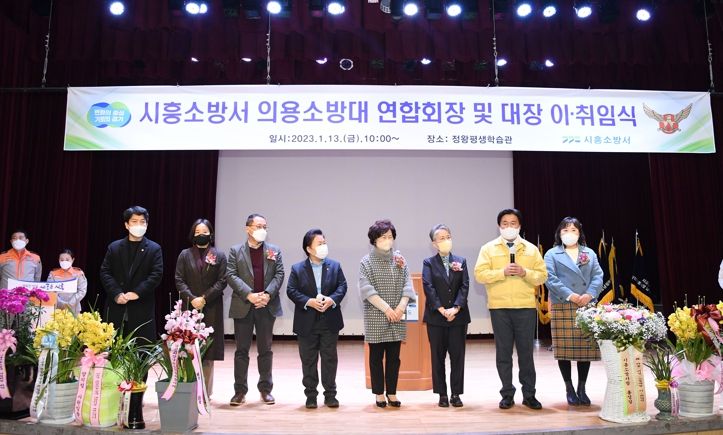 [한국기자연대] 시흥의용소방대가 연합회장 및 의용소방대장 이ㆍ취임식을 지난 13일 정왕평생학습관에서 진행해 감사와 축하의 자리가 마련됐다.
