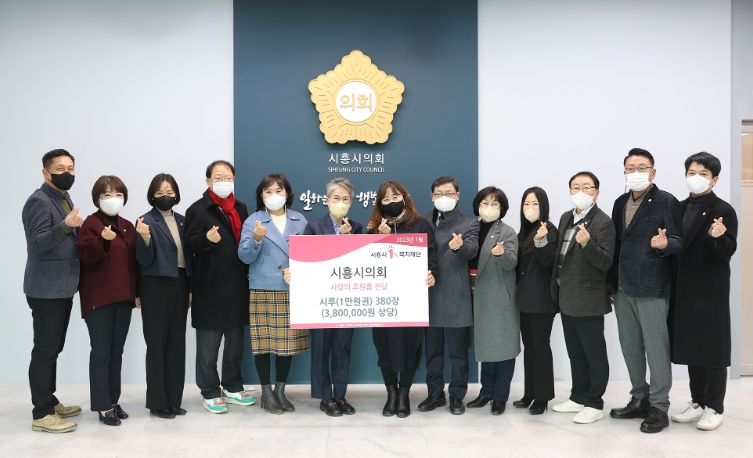 [한국기자연대] 경기 시흥시의회(의장 송미희)가 1월 18일 설 명절을 맞아 의회 청사 로비에서 전달식을 갖고 시흥시1%복지재단에 시흥화폐 시루 380만 원을 후원했다.