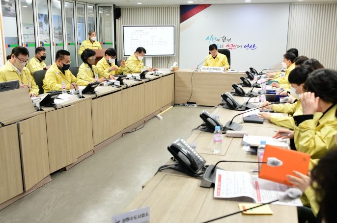 이날 안산시청 재난상황실에서 진행된 회의는 이민근 시장과 김대순 부시장, 시 재난관련 부서장 등 17명이 참석한 가운데 진행됐다.