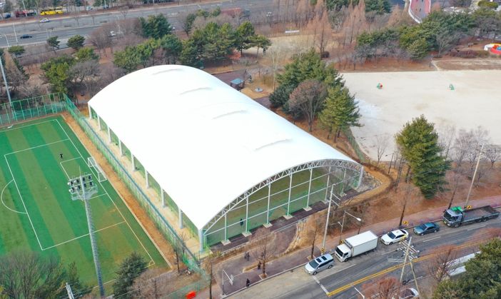 특히 지붕에 막구조물을 설치하고 조명시설을 완비해 족구 동호인들이 시간과 날씨에 구애받지 않고 운동을 즐길 수 있어 생활체육 활성화에 크게 기여할 것으로 기대되고 있다.