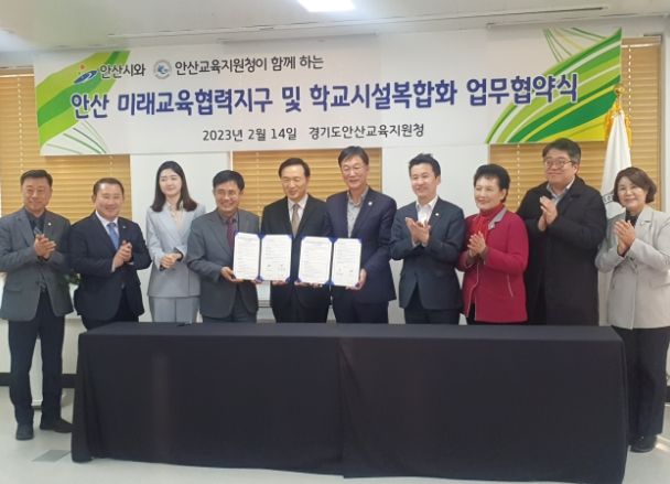[한국기자연대] 경기도안산교육지원청과 안산시청은 2월 14일 안산원곡초등학교 학교시설복합화사업을 위한 기본 협약을 체결했다.