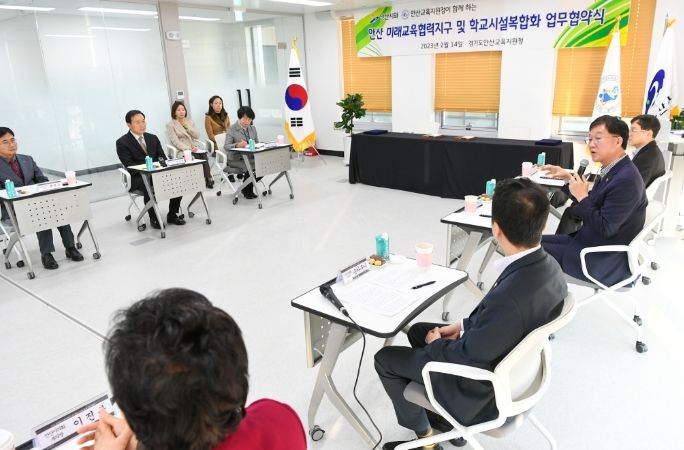 지난 14일 안산교육지원청에서 진행된 협약은 이민근 안산시장과 송바우나 안산시의회 의장, 임태희 경기도교육감과 홍정표 안산교육지원청 교육장, 지역 도·시의원 등이 참석한 가운데 진행됐다.