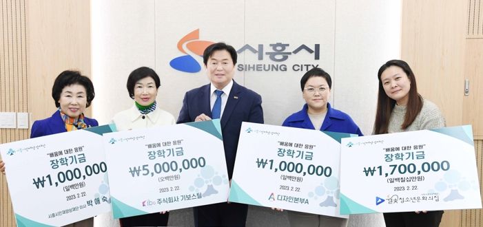 이날 기탁식에는 관내 기업인 기보스틸 주식회사, 디자인본부A와 시흥시청소년재단 월곶청소년문화의집, 재단 박애숙 이사가 함께해 총 870여 만원의 장학기금을 기탁했다.