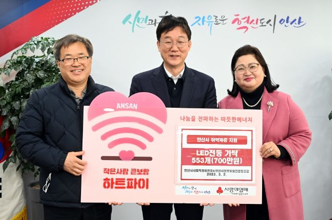 [한국기자연대] 안산시는 지난 2일 안산시사회적경제연대와 안산시민햇빛발전협동조합으로부터 취약계층을 위한 LED전등 553개(700만 원 상당)를 기탁받았다고 3일 밝혔다.