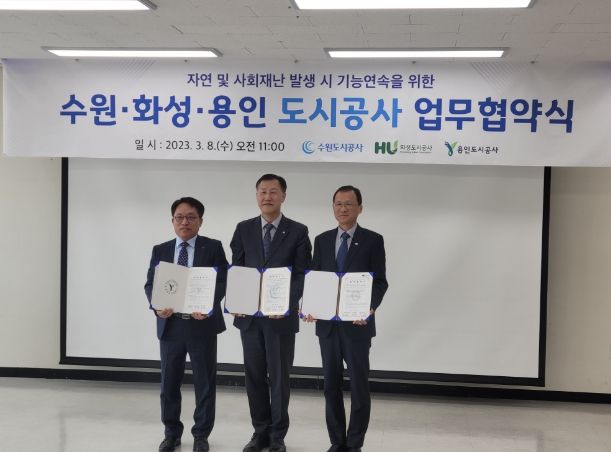 [한국기자연대] 화성도시공사(사장 김근영, HU공사)는 전국 최초로 수원·용인도시공사와 함께 ‘재난안전협의체 업무협약(MOU)’을 체결했다고 8일 밝혔다.