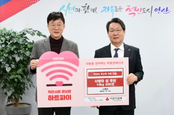 [한국기자연대] 안산시는 14일 ㈜동은으로부터 저소득 소외계층을 위한 사랑의 쌀 300포(10kg)를 기탁받았다고 밝혔다.