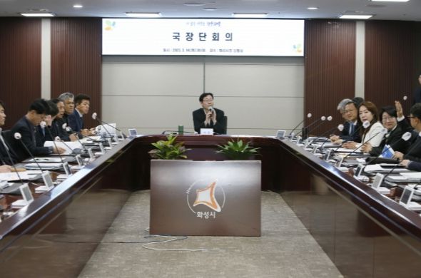 [한국기자연대] 화성시가 14일, 상황실에서 실·국장 이상 간부, 주요 부서장 및 공공기관장 등 60여명이 참석한 가운데 국장단회의를 열고 청렴실천 의지를 다졌다.
