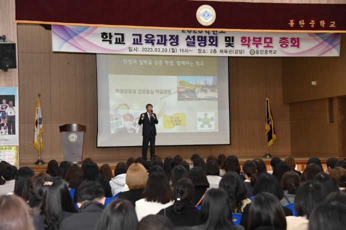 [한국기자연대] 화성 소재 동탄중학교(교장 남현석)는 3월 20일 한마루관에서 ‘2023학년도 학교교육과정 설명회 및 학부모총회’를 개최했다. 코로나19로 인해 4년만에 대면으로 개최된 행사에는 학부모 200여명이 참석했다.