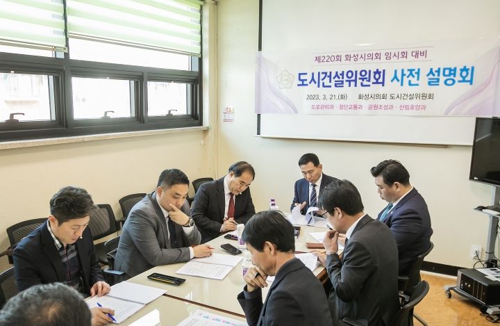 [한국기자연대] 화성시의회 도시건설위원회(위원장 정흥범)는 21일 제220회 화성시의회 임시회 중 도시건설위원회에서 심의할 조례 안건에 대하여 집행부 관련부서와 사전 설명회를 가졌다.