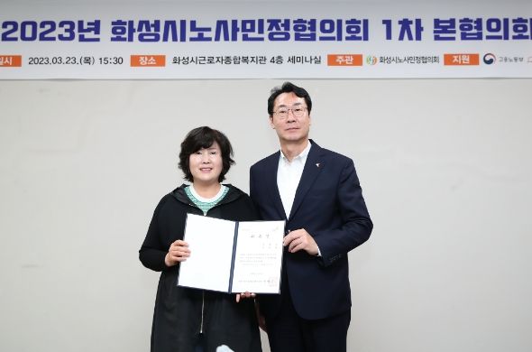 23일 화성시근로자종합복지관 4층 세미나실에서 열린 본협의회는 정명근 화성시장을 비롯한 한국노총화성지역지부 남상윤의장, 화성상공회의소 박성권회장 등 본협의회 위원 15명이 참석한 가운데 진행됐으며 노·사 각 분야에서 새롭게 위촉된 5명의 신임 위원에게 위촉장을 수여하고 지난해 협의회의 주요 성과점검과 함께 2023년 추진사업에 대해 심의·의결했다.