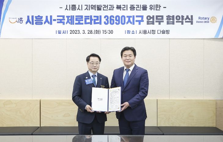 이날 협약식에서 시흥시와 국제로타리 3690지구는 ⧍저소득 취약계층 복지 지원을 위한 나눔 및 봉사활동 ⧍지역인재 양성을 위한 관련사업 ⧍그 외 지역복지 관련 기타 협력이 필요한 사항 등 시흥 지역사회 발전을 위한 사업에 관해 상호 협력하기로 약속했다.