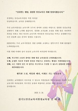 [한국기자연대] 경기도안산교육지원청은 3월 28일에 ‘교육장의 청렴 다짐’을 교육지원청과 안산 관내 각급 학교에 전파했다.