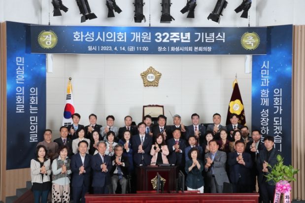 지난 1991년 4월 15일 개원해 올해 개원 32주년을 맞는 화성시의회는 이날 김경희 의장을 비롯한 화성시의원, 의정회 임원, 정명근 화성시장, 집행부 및 의회 직원 등 80여 명이 참석한 가운데 기념식을 진행했다.