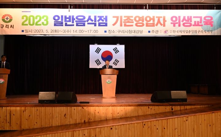 [한국기자연대] 백경현 구리시장은 지난 5월 2일과 3일 이틀간 구리시청 대강당에서 800여 명이 교육받은 ‘2023년 일반음식점 기존영업자 위생교육’에 참석한 가운데 “구리시를 찾는 모든 손님들이 안전하고 위생적인 음식을 즐 길수 있도록 힘써 달라”라며 당부했다
