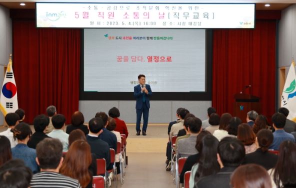 [한국기자연대] 과천시는 4일, 시청 대강당에서 열린 직원 소통의 날에 송외동 행정안전부 국회과장을 초청해 ‘꿈을 담다. 열정으로’라는 특강을 실시했다.