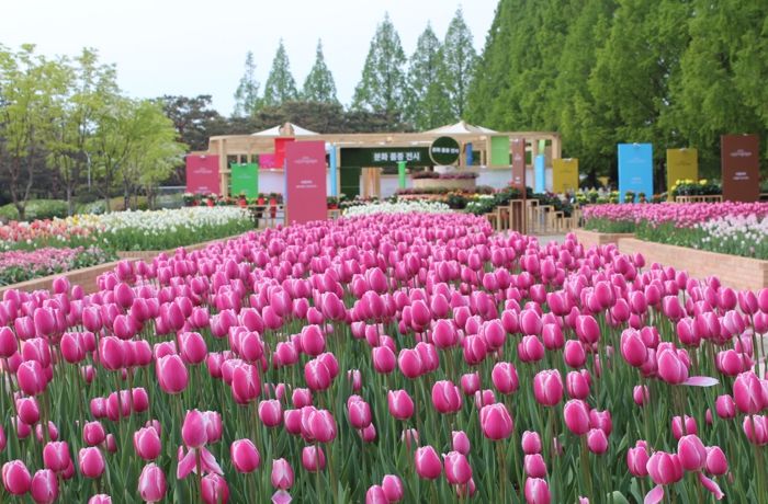 화훼산업관 앞 튤립정원은 하양, 노랑, 빨강, 분홍 튤립이 물결을 이룬다. 선명하게 피어오른 튤립이 물감을 칠한 듯 진하게 화단을 물들인다. 넓게 펼쳐진 튤립정원은 꽃으로 가득한 들판을 거니는 즐거움을 선사한다. 하늘거리는 튤립사이에서 잠시 쉬어가도 되고 사진을 찍기에도 좋다.