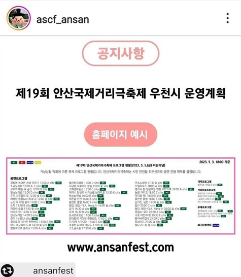 이에 축제를 찾는 관람객들은 안산국제거리극축제 공식 홈페이지에서 공연 취소 및 일정 변경 여부 등을 확인 후 관람해야 한다.