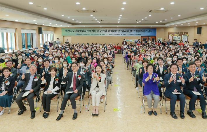 [한국기자연대] 이천시노인종합복지관은 8일 어버이날을 기념하여 “감사해孝 힐링축제” 및 관장취임식을 개최했다. 이번 축제는 어버이 은혜에 감사하는 마음을 담아 지역사회 어르신들 약 500여명을 모시고 관내 큰마당에서 진행됐다.