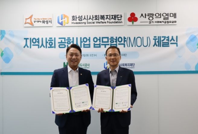 [한국기자연대] 화성도시공사는 9일 화성시사회복지재단과 지역사회 공헌사업 공동 추진을 위한 업무협약을 체결했다.