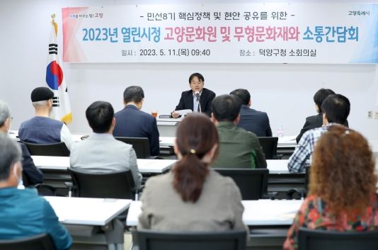 [한국기자연대] 고양특례시는 지난 11일 고양문화원 및 무형문화재 보유자들과의 소통간담회를 실시했다. 이날 고양문화원 관계자 및 무형문화재 보유자 40여 명이 참석했다.