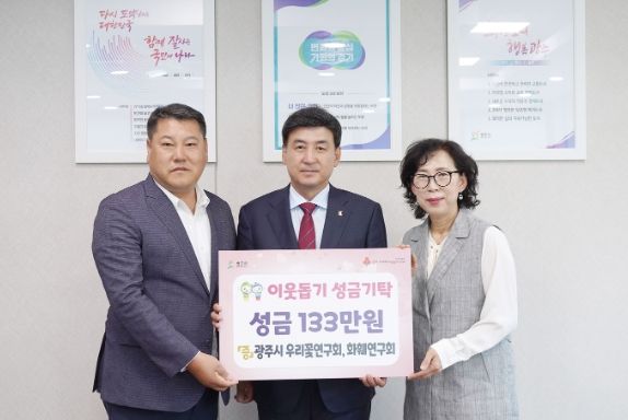 [한국기자연대] 광주시 우리꽃연구회와 화훼연구회는 12일 ‘제20회 광주시 우리꽃전시회’에서 모은 성금 133만 원을 광주시에 기탁했다. 이 성금은 지난 4월 개최한 ‘제20회 광주시 우리꽃전시회’의 분화체험비와 지역에서 생산한 화훼 판매 수익금을 모아 마련했다.