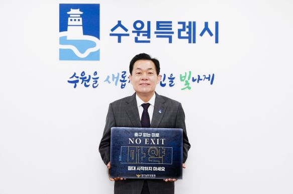 [한국기자연대] 이재준 수원특례시장이 마약범죄 예방을 위한 SNS 릴레이 캠페인 ‘NO EXIT’에 동참하고, “‘마약 청정도시 수원’을 만들기 위해 최선을 다하겠다”고 말했다.
