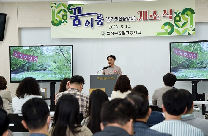 [한국기자연대] 김동근 의정부시장은 12일 의정부공업고등학교에서 열린 꿈이룸터(공간혁신융합실) 개소식에 참석했다.