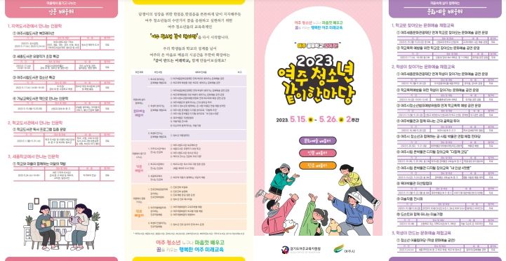 2023 여주 청소년 같이 한마당은 2022년 10월부터 2023년 4월까지 7개월 간 여주교육지원청과 여주시청, 다양한 관계기관의 치열한 소통과 협의로 기획됐으며 여주시에 거주하는 청소년, 학부모, 교직원과 시민을 대상으로 2023년 5월 15일부터 26일까지 2주간 운영된다.