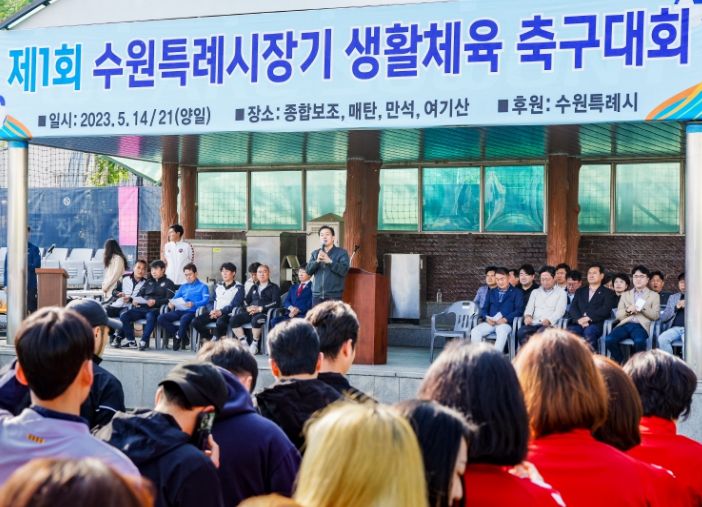 [한국기자연대] 제1회 수원특례시장기 생활체육 축구대회가 14일 개막했다.