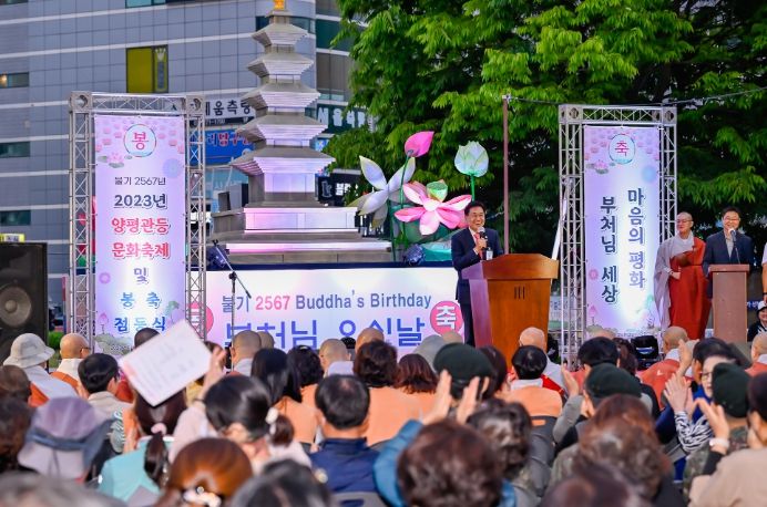 전진선 양평군수는 축사에서 “부처님의 자비가 양평군 전역을 보살펴주심에 감사한다. 공경의 마음을 담은 금일 봉축 점등식을 통해 모든 군민들의 안녕과 행복을 기원하며, 앞으로도 우리 군의 문화와 종교 발전을 위해 더욱 노력하겠다.”고 말했다.
