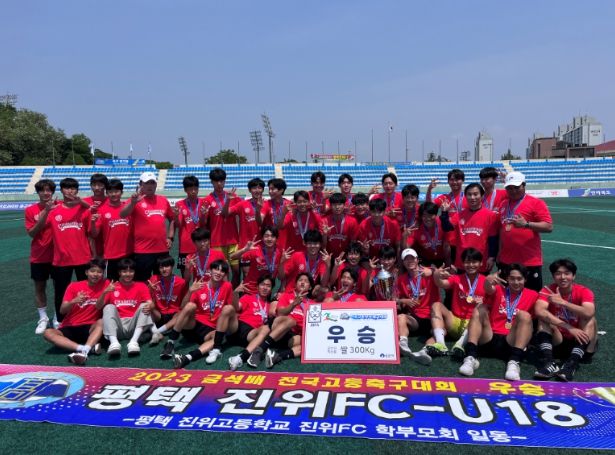 [한국기자연대] 평택진위FC-U18팀이 지난 13일 군산 월명종합경기장에서 열린 대회 결승전에서 서울상문고를 4:0으로 이기며 2023 금석배 전국고등학교 축구대회에서 우승했다. 이 우승으로 평택진위FC-U18팀은 2021년, 2022년, 2023년 대회 3년 연속 우승이라는 대기록을 세웠다.
