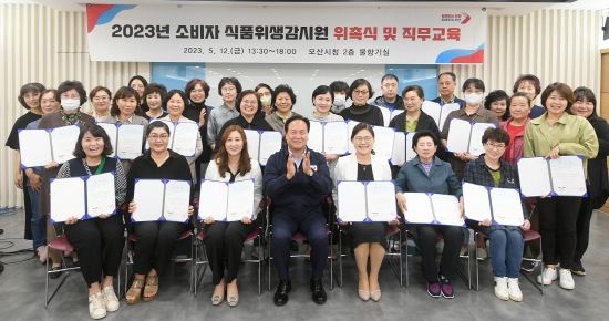 위촉식에 이어 오산시 식품 안전 파수꾼으로 활동 중인 소비자 식품 위생 감시원 40여 명을 대상으로 업무능력 강화를 위해 전문 교육과 감시원으로서 필요한 기본 소양 교육도 이뤄졌다.