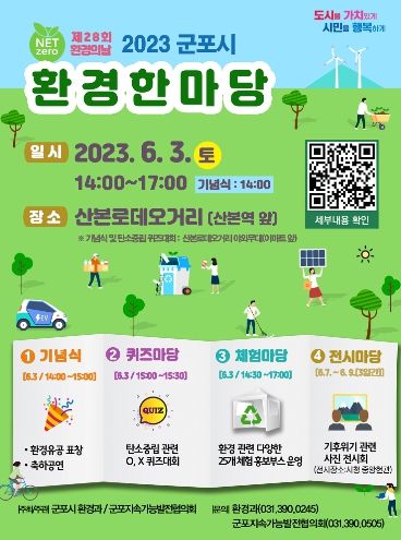 [한국기자연대] 군포시는 오는 6월 3일 토요일, 오후 2시부터 5시까지 산본로데오거리에서 제28회 환경의 날(6.5.)을 기념하는 ‘2023년 군포 환경한마당’을 개최한다고 밝혔다.