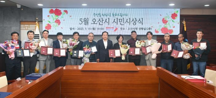 [한국기자연대] 오산시는 지난 15일 시청 상황실에서 지역사회 발전을 위해 헌신하고 발전을 위해 노력한 시민들에게 감사의 마음을 전하는 시민시상식을 개최했다고 전했다.