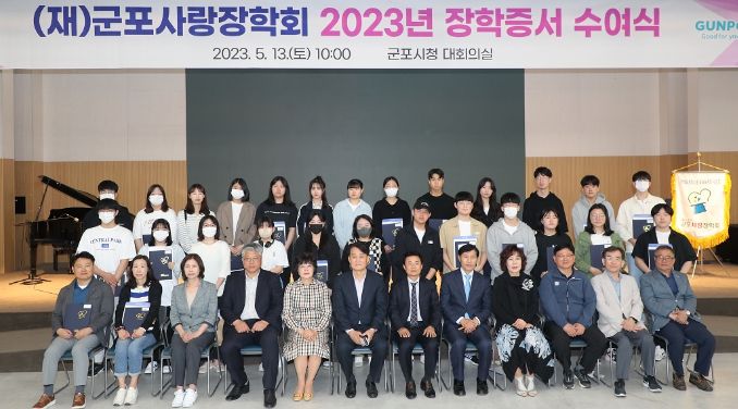 [한국기자연대] 군포사랑장학회는 5월 13일 군포시청 대회의실에서 2023년 장학생으로 선발된 고등학생 80명, 대학생 147명 등 총 227명의 학생들에게 장학증서를 수여했다