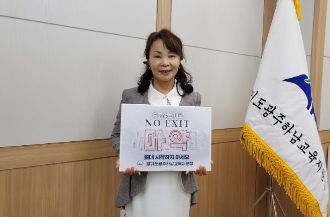 [한국기자연대] 경기도광주하남교육장 김성미는 5월 16일 마약범죄 예방을 위한 ‘노 엑시트(NO EXIT)’릴레이 챌린지에 동참했다.