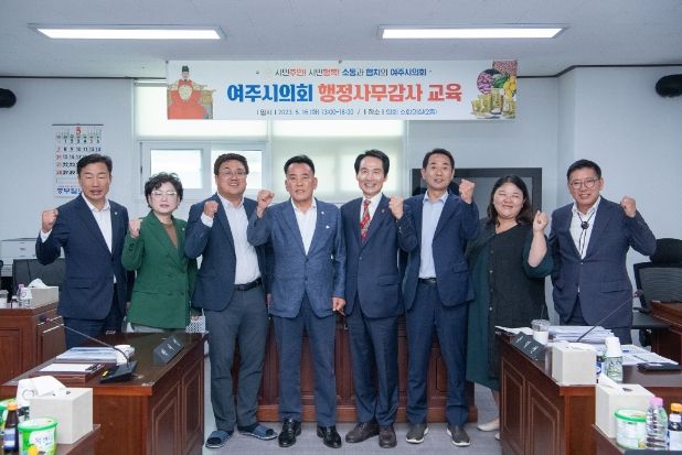 [한국기자연대] 여주시의회는 지난 5월 16일 오후 13시부터 18시까지 5시간 동안 의회 소회의실에서 제66회 여주시의회 정례회 행정사무감사에 대비한 전문강사 초빙 특강을 실시 했다. 정병관 의회 의장을 비롯한 여주시의회 의원 7명 전원이 참석하여 6월 7일부터 6월 16일까지 8일간 예정된 행정사무감사를 단단히 준비하는 모습이었다.