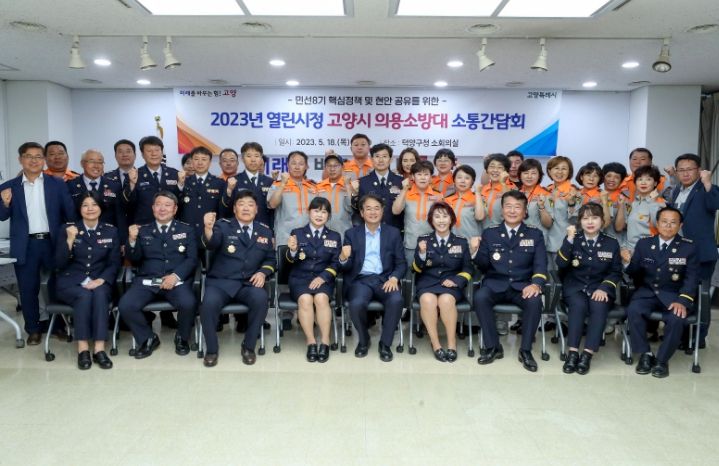 [한국기자연대] 고양특례시는 18일(목) 오후 덕양구청 소회의실에서 지역 의용소방대원 40여 명과 소통 간담회를 가졌다.