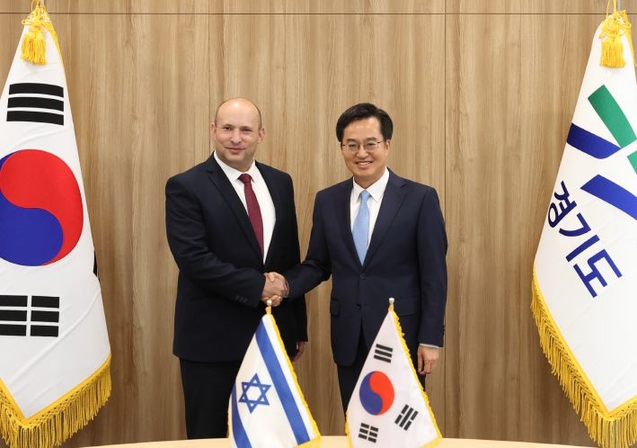 김동연 지사는 19일 오후 경기도청에서 나프탈리 베네트 전 총리와 만난 자리에서 “경기도는 대한민국 산업의 중심이고, 반도체·바이오·자동차·인공지능·빅데이터 등 주요 미래 산업과 제조·서비스 등 기본 산업이 모두 발달해 있다”라며 “이스라엘과 경기도가 새싹기업이나 중소기업 분야에서 협력한다면 좋은 기회가 창출될 것”이라고 말했다.