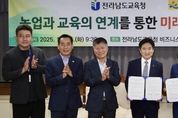[한국기자연대] 전라남도교육청은 10월 14일 청사 5층 비지니스실에서 전라남도 농업기술원(원장 김행란)과 ‘농업과 교육의 연계를 통한 미래인재 육성 업무협약’을 체결했다. 이번 협약은 농업·농촌의 다양한 자원을 교육과 연계해 학생들이 체험 중심으로 배우고, 생태 감수성과 창의 역량을 키울 수 있도록 지원하기 위해 마련됐다. 이번 협약에 따라 양 기관은 ▲ 농촌교육농장과 치유 농장을 활용한 체험교육 확대 ▲ 늘봄학교 운영과 연계 가능한 프로그램 제공 ▲ 생태 기반 창의 교육, 진로, 창업 체험처 발굴 및 정보 제공 ▲ 지속가능한 농촌교육 모델 구축 등에 힘을 모으기로 했다. 양 기관은 협약 내용을 바탕으로, 각급 학교와 교육지원청이 쉽게 활용할 수 있는 프로그램을 발굴하고 현장 체험 중심 교육 자료를 개발할 예정이다. 또한 교원 연수와 교육공동체 협력 네트워크를 운영해 농업·농촌 자원을 효과적으로 교육 현장에 적용할 수 있도록 지원할 방침이다. 아울러, 농촌교육농장의 교육적 활용도를 높이고, 지역 농업과 연계한 미래형 교육 모델을 확산할 계획이다. 학생들은 이를 통해 생태