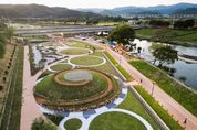 [한국기자연대] ‘가을 여행 명소’ 장성군에 조성된 황룡강 주제정원이 새로운 ‘핫 플레이스’로 부상 중이다. 장성군은 2023년부터 ‘지방정원 조성공사’를 통해 총 6개의 주제정원을 황룡강 일원에 만들고 있다. 전통적인 오방색에서 착안해 주제 색을 정하고 구간별로 △황룡정원(황) △홍담정원(적) △청백리정원(백) △푸른물빛정원(청) △검은숲정원(흑)을 조성 중이다. 여기에 지난 5월 ‘전라남도 정원 페스티벌’ 때 조성된 작가정원·초청정원·시민참여정원을 보존한 ‘참여정원’이 더해졌다. 가장 많은 발길이 모여드는 곳은 ‘황룡정원’이다. 옛 공설운동장 부지에 장성 잔디를 심고, 강변 쪽에는 음악 분수와 상설 무대를 설치했다. 무대를 바라보며 앉을 수 있도록 부채꼴 모양으로 계단을 만들고, 단차를 둬 공연을 관람하는 데 불편이 없도록 했다. 정원 외곽을 포근하게 감싸는 소나무와 은목서가 경관의 완성도를 높인다. 황룡강을 대표하는 정원으로, 매년 봄·가을 축제 주무대가 마련되는 장소다. ‘황룡정원’이 방문객들로 사랑받는 이유는 ‘자유로움’에 있다