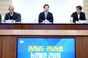 [한국기자연대] 김영록 전라남도지사는 24일 도청 서재필에서 전남농협 조합장 등 13명과 간담회를 열어 농정 발전 협력 방안을 심도 있게 논의했다. 간담회에는 4선 이상 조합장들이 다수 참석해 지역별 농업 현안과 협력사업을 공유하고, 전남 농업의 경쟁력 강화와 농업인 경영안정을 위한 다양한 의견을 제시했다. 김영록 지사는 이 자리에서 “올 한 해 봄부터 가을까지 이어진 재해와 일부 농산물 가격 급등락 속에서 농민과 함께 애쓰고 고민하느라 수고 많았다”며 감사의 뜻을 전했다. 이어 “농협은 우리 농정의 핵심축”이라며 “탁월한 리더십으로 전남 농업의 미래를 여는데 큰 역할을 해줄 것”을 당부했다. 전남도와 전남농협은 생산비 절감, 농가 경영안정, 유통 활성화를 목표로 ▲원예작물 해충포획기 지원 ▲바이오차(토양환경개선제) 지원 ▲원예 분야 재해예방시설 지원 ▲농촌인력중개센터 운영 ▲농업재해보험사업 ▲친환경농산물 꾸러미 지원 ▲농촌 왕진버스 지원 등 총 18개 사업을 공동 추진했다. 올해 투입된 협력사업비는 2천755억 원에 달한다. 전남도는 앞으로도 농협과 협력 체계를 더욱 강화해 노동력 부
