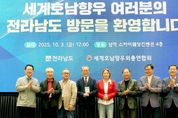 [한국기자연대] 세계 각국에 거주하는 호남 향우들이 글로벌 고향사랑 실천에 앞장서고 있다. 세계호남향우회 총연합회(회장 이기자)는 3일 ‘2025 세계 호남인의 날’을 기념해 전 세계 회원 250여 명과 함께 전남을 방문, 고향사랑기부금 3천만 원을 전달했다. 이번 기부는 이기자 총연합회장, 김원봉 제2대 회장, 이동수 3대 회장, 김영윤 4대 회장, 김점배 아프리카중동한인회 총연합회장, 손재민 중국호남향우회총연합회 4·5대 회장, 김용덕 동경호남향우회 11대 회장 등 주요 임원들의 참여로 이뤄졌다. 이기자 총연합회장은 “고향에 대한 그리움과 깊은 애정을 담아 기부금을 마련했다”며 “고향 발전에 보탬이 돼 기쁘고, 언제나 전남 발전을 응원한다”고 말했다. 김영록 전남도지사는 “향우들께서 해외에서도 호남인의 긍지를 지키면서 고향 발전을 위해 지속해서 힘을 보태주고, 전남에 어려움이 있을 때마다 앞장서준 것에 깊은 감사의 뜻을 전한다”며 “고향을 향한 각별한 관심과 성원에 보답하도록 최선을 다하겠다”고 말했다. 세계호남향우회총연합회는 2013년 창설돼 27개 나라 75개 지역 200만 호남