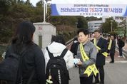 [한국기자연대] 전라남도교육청이 2026학년도 대학수학능력시험일인 13일 시험장을 찾아 수험생을 응원했다. 김대중 교육감을 비롯한 도교육청 간부들은 이날 오전 75지구 제7시험장인 순천복성고등학교 교문 앞에서 시험을 치르기 위해 들어서는 수험생들을 반갑게 맞이하며 최선을 다해줄 것을 당부했다. 순천복성고 현장에는 김 교육감과 박철완 중등교육과장, 허동균 순천교육지원청교육장, 강종수 순천복성고 교장 등이 “파이팅”을 외치며 수능 대박을 기원했다. 이날 오전 황성환 부교육감도 교육청 간부들과 함께 문태고등학교를 방문해 수험생들을 격려했다. 김대중 교육감은 “모든 수험생 여러분, 정말 수고 많았다. 오늘은 여러분의 날이다”며 “결과에 대한 부담은 내려놓고, 그동안의 노력이 만들어준 자신감을 믿으며 차분히, 끝까지 최선을 다하길 바란다”고 말했다. 한편, 이날 목포·여수·순천·나주·광양·담양·해남 등 7개 시험지구, 총 46개 시험장에서는 1만 4,952명의 수험생이 2026학년도 대입 수능시험을 치른다.