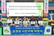[한국기자연대] 여수시는 지난 12일 진남실내체육관에서 열린 ‘제22회 여수시 농업인학습단체 한마음대회’가 농업인 등 700여 명이 참석한 가운데 성황리에 마무리됐다고 밝혔다. 한국생활개선여수시연합회와 한국농촌지도자여수시연합회가 공동 주관한 이번 행사는 ‘AI 과학영농 시대, 여수농업이 선도한다’를 주제로 기후변화와 고령화에 대응하고 AI 기술을 활용한 지속 가능한 농업 실현의 뜻이 담겼다. 이날 행사에는 한국농촌지도자전라남도연합회와 한국생활개선전라남도연합회가 함께 참여해 총 4개 단체가 2,500만 원 규모의 2026여수세계섬박람회 입장권 구매 약정식을 진행하며 박람회 성공개최 염원에 뜻을 모았다. 또한 송미령 농림축산식품부 장관과 전라남도 생활개선회원들의 ‘섬박람회 성공개최 염원 엽서’가 전시돼 눈길을 끌었으며 참석자들이 직접 작성한 엽서 현장 평가 이벤트와 ‘섬박람회 OX 퀴즈’도 진행돼 축제 분위기 속에서 박람회 붐 조성에 기여하는 시간이 됐다. 행사장에는 회원들이 직접 재배한 농산물과 계절별 음식 작품, (사)아름다운 여수시귀농귀촌협회에서 생산한 우수농산물 전시·홍보 공간도 마련돼 지역 농