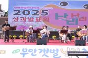 [한국기자연대] 전남 무안군은 지난 1일 무안읍 갯벌낙지축제 주무대에서 2025년 무안군 일반농산어촌개발사업 성과발표회 ‘난리난리 3탄’을 낙지축제와 연계하여 개최했다. 이날 행사에는 공연자 200여 명과 김산 군수, 이호성 군의회 의장, 정길수 도의원, 정은경 부의장 등 군의원과 지역 내·외빈 등이 참석해 함께 축하했다. 이번 축제는 낙지 축제, 도시재생 마을관리사회협동조합, 난리난리 축제 등이 함께 어우러져 한층 더 풍성해졌다. 행사는 풍물패 길놀이 공연을 시작으로 무안군이 전국 최초로 추진한 마마학당 어머니들의 노래와 댄스 공연을 비롯해 읍·면별 13개 동아리팀의 댄스·장구· 노래·요가 등 다채로운 무대가 이어져 함께한 주민과 관광객의 환호와 박수를 받았다. 이와 함께 운영된 15개 전시·체험 부스도 큰 인기를 끌었다. 버나놀이와 남사당 체험, 탁구·드립커피·키링 만들기 등 다양한 체험 프로그램이 진행됐으며, 서예작품 전시 등 풍성한 볼거리도 마련됐다. 특히 고구마와 단호박으로 만든 간식류, 단감 시식, 도시재생 마을관리사회협동조합의 파전과 단호박죽 등은 관광객들의 관