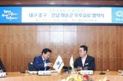 [한국기자연대] 화순군은 지난 10월 10일 경기도 용인특례시와 자매결연을 체결한 데 이어 10월 29일 대구광역시 중구와 상호 협력과 공동 발전을 위한 우호교류 협약식을 개최했다고 밝혔다. 이번 협약은 두 지역이 보유한 풍부한 인프라를 기반으로 활발한 교류를 추진해 생활 인구 확대와 지역경제 활성화, 지방 소멸 위기 공동 대응을 도모하기 위해 마련됐다. 이날 협약식에는 구복규 화순군수와 류규하 대구 중구청장, 오형열 화순군의회 의장, 김동현 대구중구의회 의장을 비롯한 주민자치회, 새마을회 대표 등 민관이 함께 참석하여 그 의미를 더했다. “함께 새롭게! 더 행복하게!”를 주제로 진행된 협약식에서 두 지자체는 문화·관광·체육·경제·교육·행정 등 다양한 분야에서 상호 교류와 협력을 추진하기로 했다. 특히 대표 축제 교차 홍보 및 상호 방문 등 실질적이고 지속 가능한 교류사업을 발굴해 나아갈 예정이다. 우호교류 협약을 기념해 화순군은 지역 대표 특산품인 샤인머스켓과 불미나리즙을, 대구 중구는 국가 무형유산인 단청장 보유자가 제작한 단청 공예품과 약령시에서 생산한 약령황제단을 선물했다. 구
