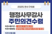 [한국기자연대] 인천광역시 연수구의회는 2025년 행정사무감사를 앞두고 주민들의 의견을 11월 18일까지 받는다. 매년 실시되는 이번 행정사무감사는 연수구 행정의 문제점을 점검하고 개선 방안을 모색하기 위한 중요한 의정 활동이다. 주민들은 위법 또는 부당한 행정행위, 제도 개선 요구사항, 예산 집행의 낭비 사례, 구민 불편사항, 그리고 구정 시책에 대한 건의사항 등을 자유롭게 제시할 수 있으며, 접수된 의견은 행정사무감사에 적극 반영되어 의정활동 자료로 활용된다. 다만, 사생활 침해 우려가 있거나 재판·수사 중인 사항, 특정 개인의 이익에 국한된 내용, 인신공격·허위·비방 등 부적절한 의견은 제외되며, 주민들은 연수구의회 홈페이지‘참여마당’내‘행정사무감사 의견수렴 게시판’을 통해 의견을 제출할 수 있다. 박현주 의장은 “주민들의 다양한 목소리가 행정에 반영되고, 더욱 투명하고 책임 있는 의정 활동이 이루어질 수 있도록 최선을 다하겠다”고 말했다.